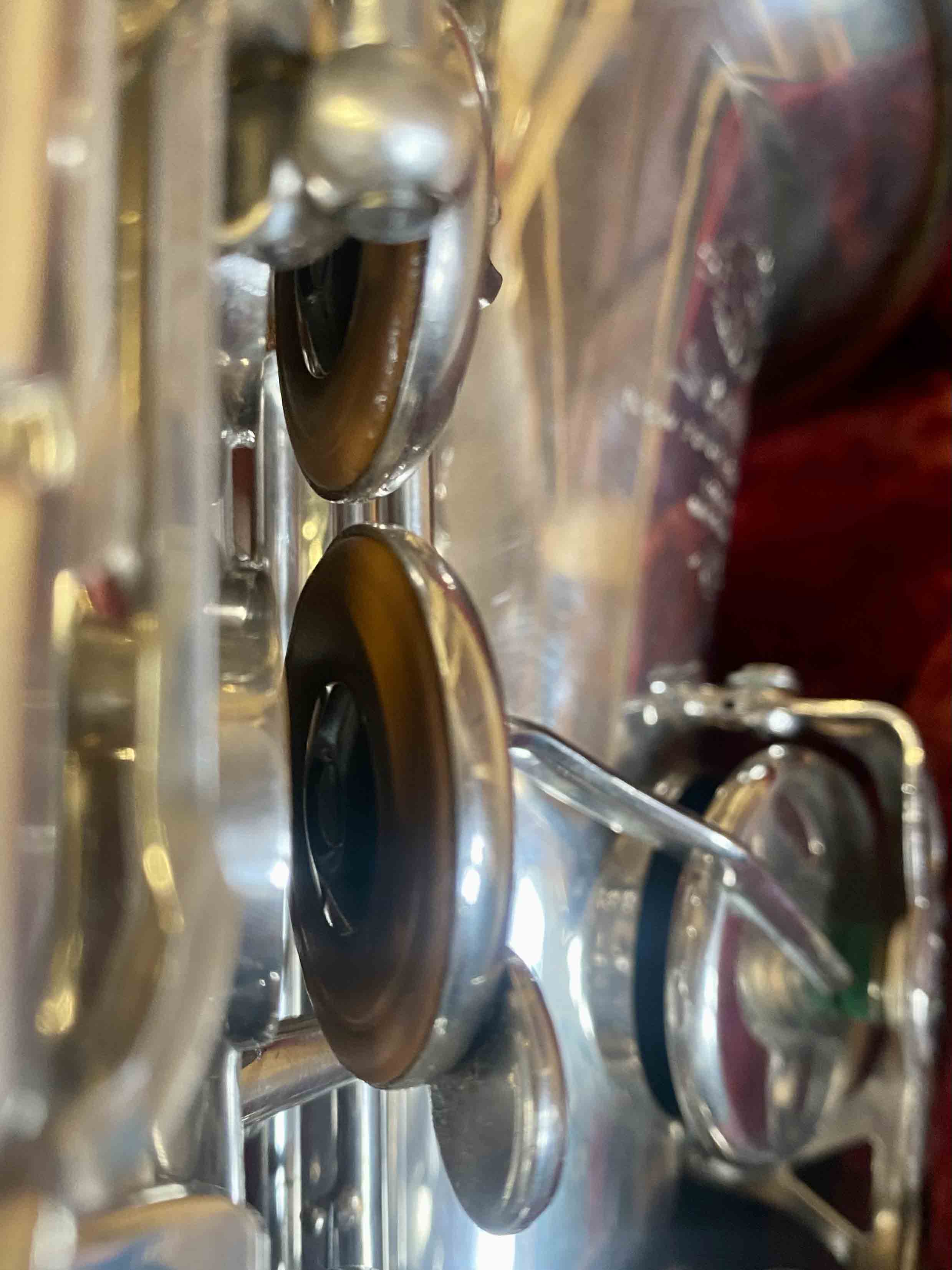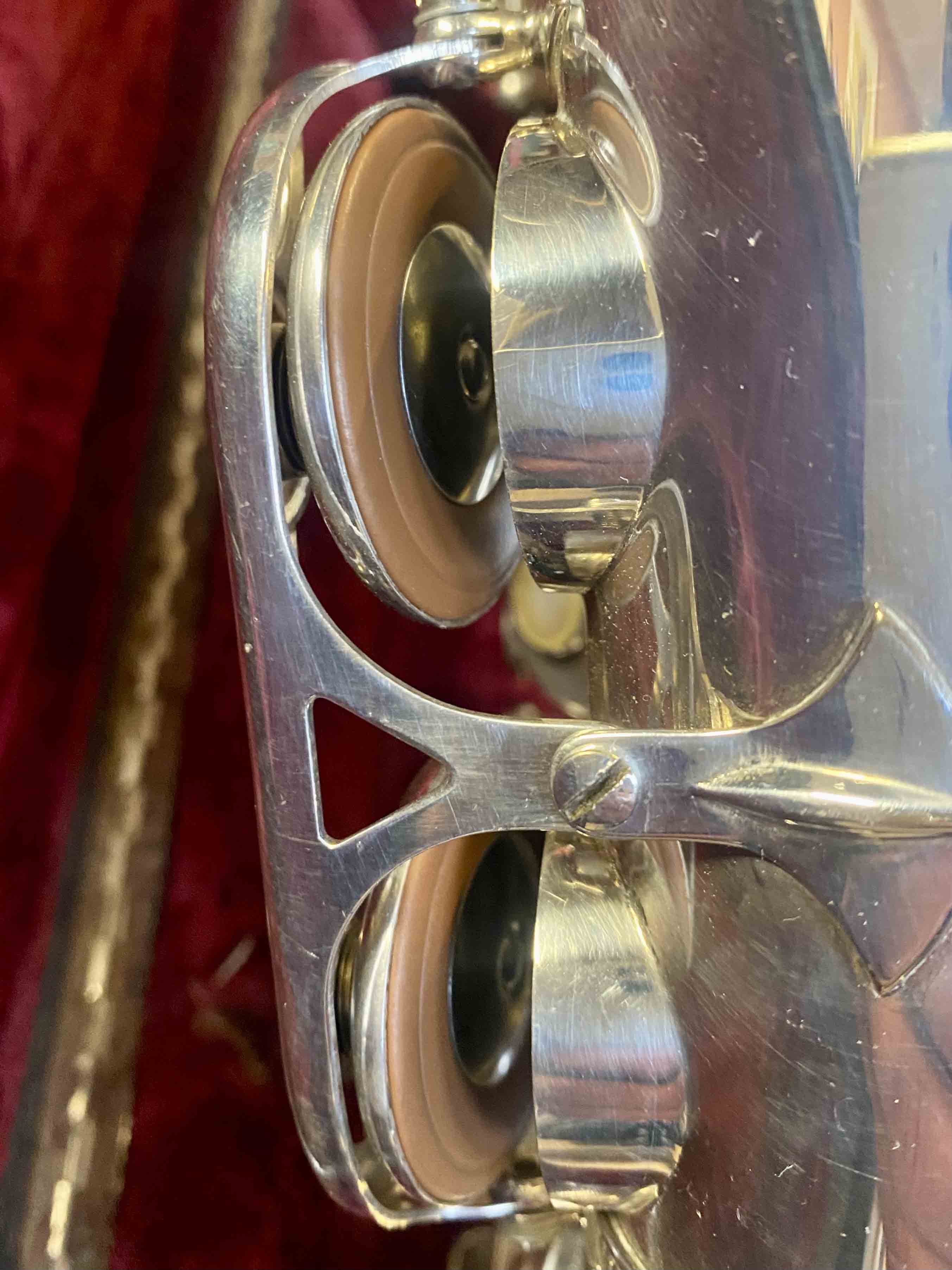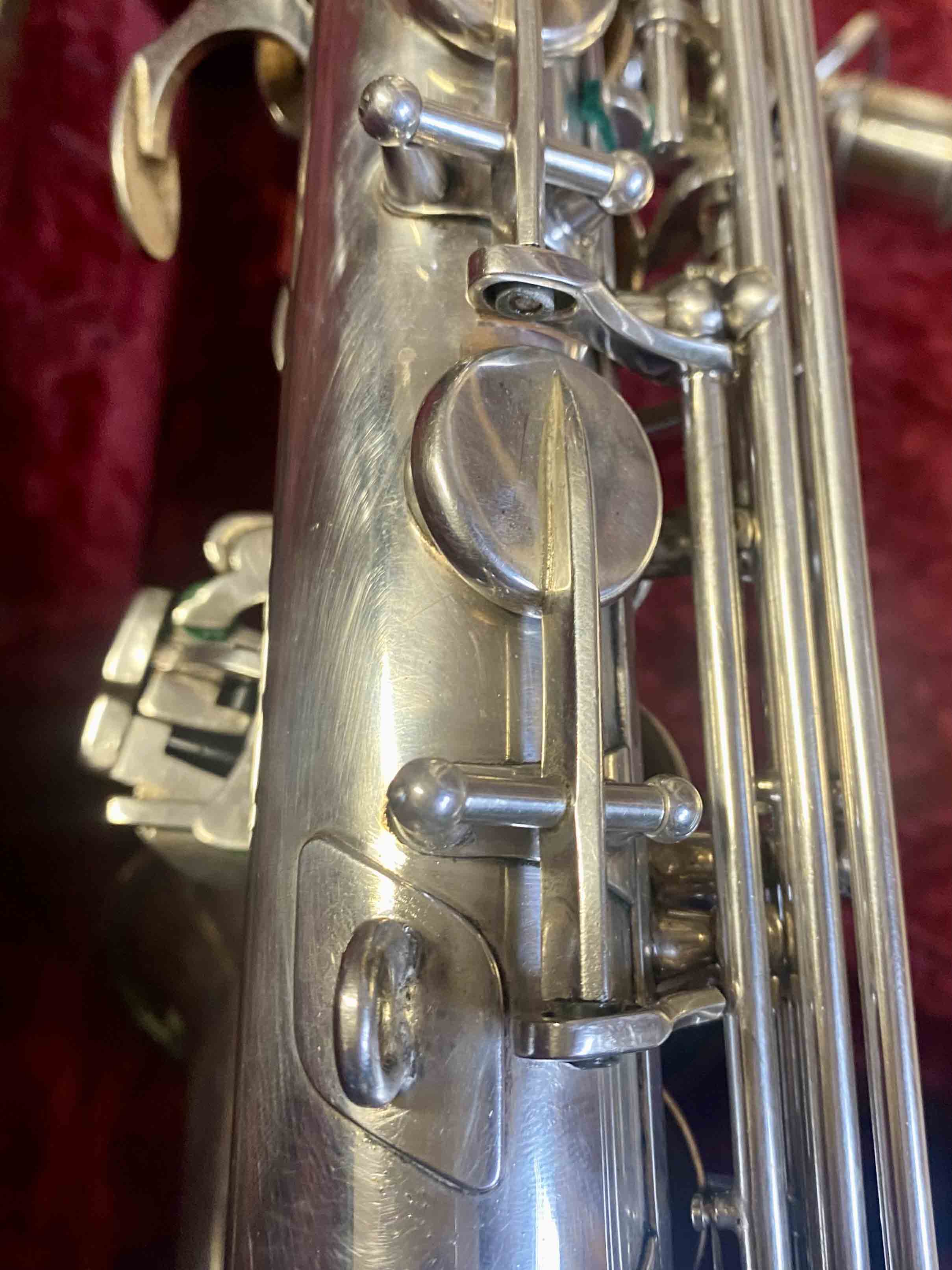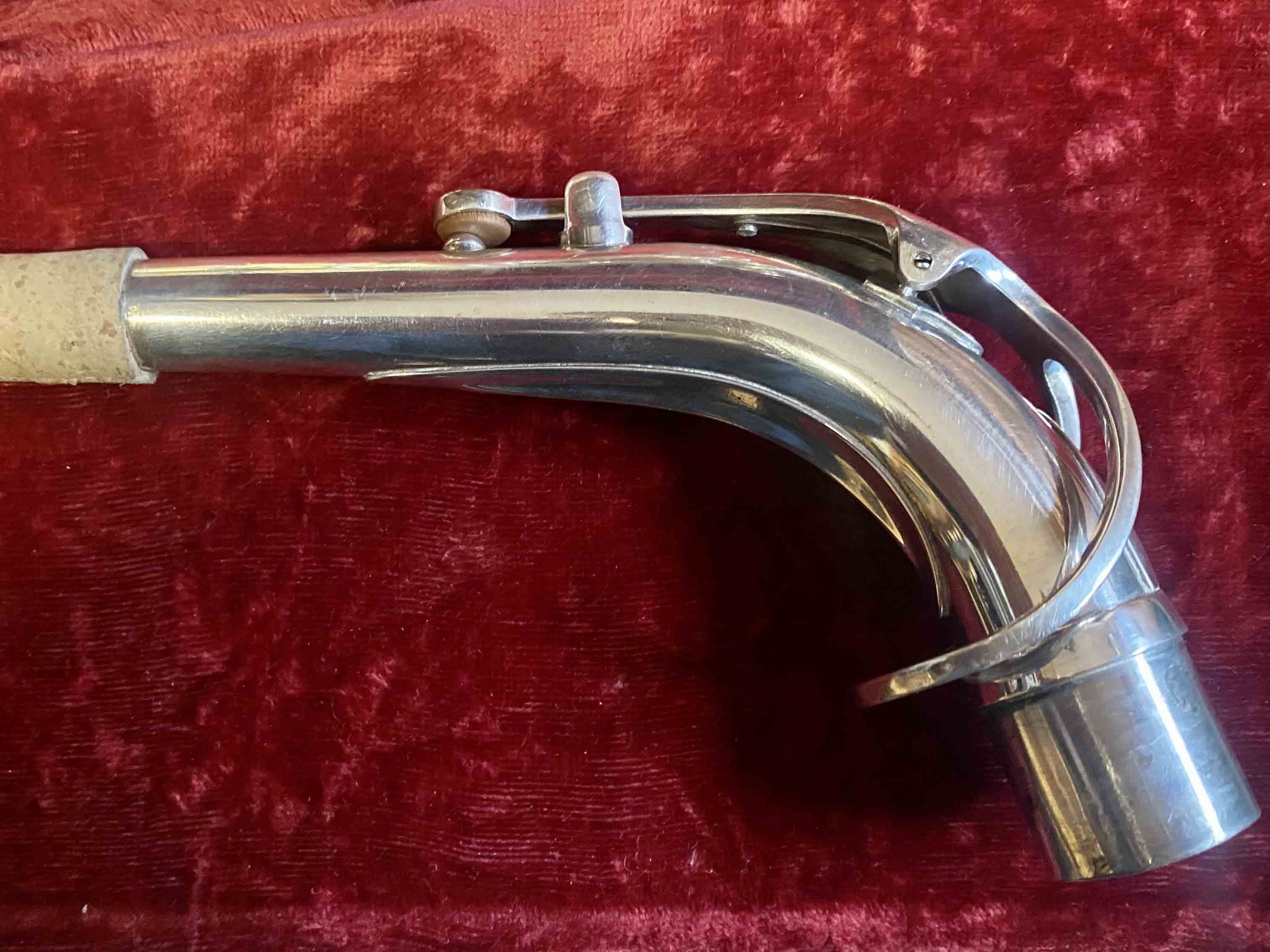 Ce saxophone Selmer Mark VI est en excellent état et a été entièrement remis à neuf avec un nettoyage ultrasons et manuel, un re-tamponnage, des nouveaux lièges et des nouveaux feutres. Il n'a aucun jeu axial ni latéral et est réglé finement pour une qualité de son optimale. La finition est argentée et il est livré avec son étui original.